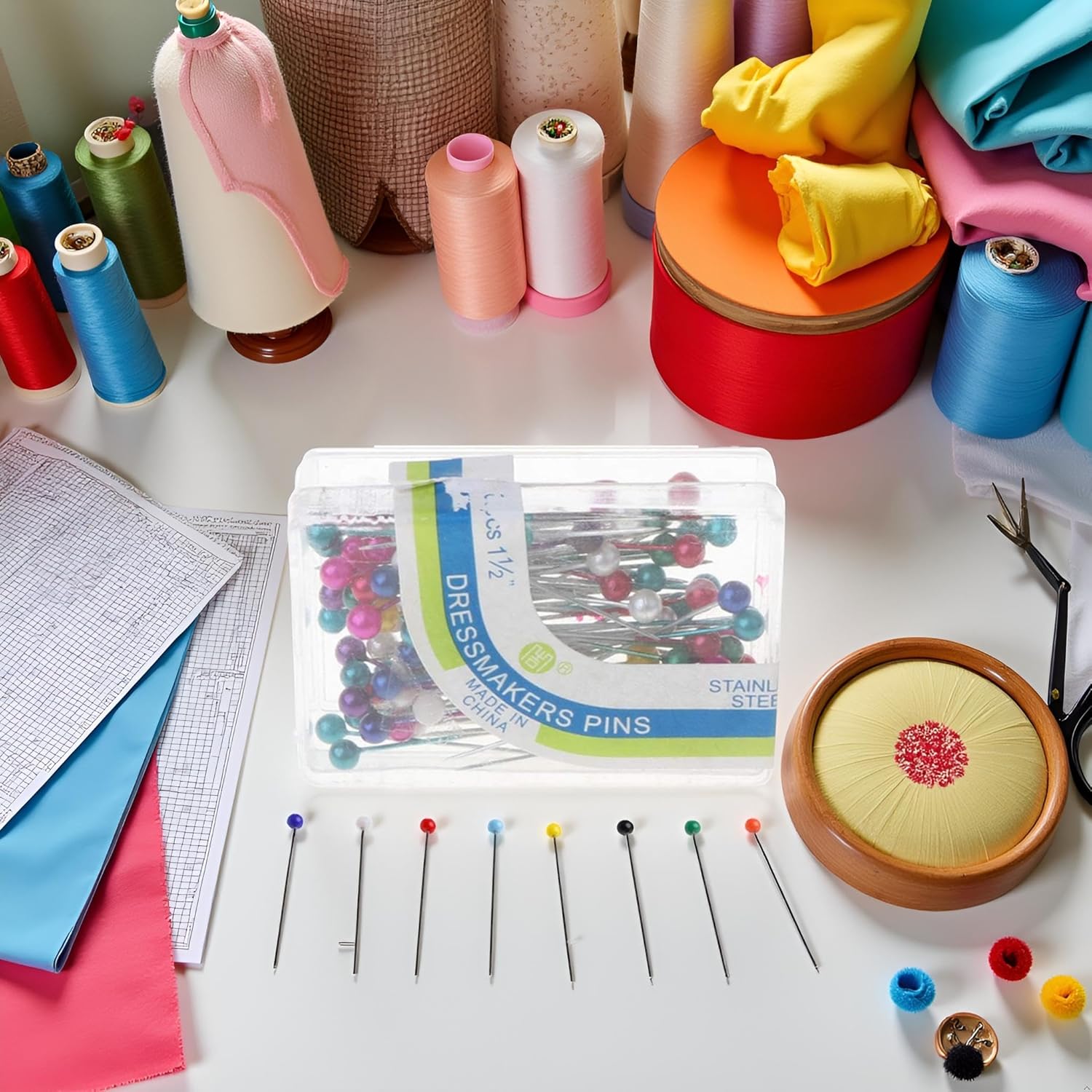 - PREMIUM SEWING PINS: Set of 100 straight pins with colorful round heads designed for dressmaking and general sewing projects
