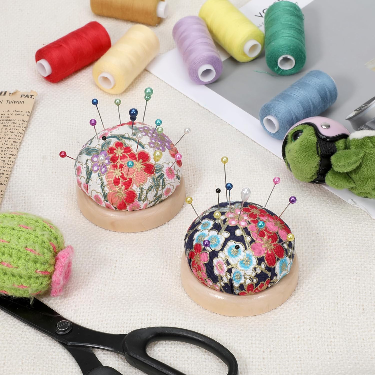 - Elegant design: These pin cushions for sewing adopt charming purple and pink color scheme, adding a feel of elegance to your sewing tools, and the wooden base provides stability to help your needles stay firmly fixed