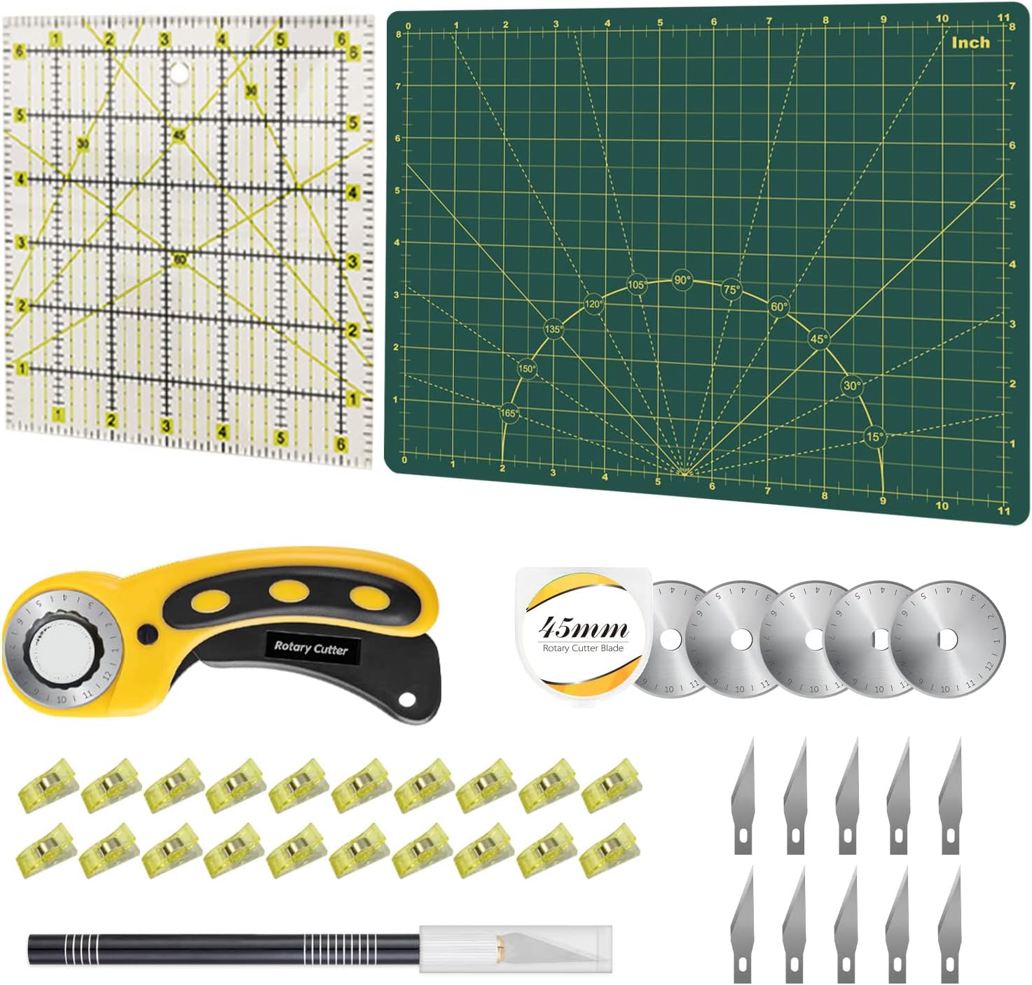 39 Pcs Rotary Cutter Set Pink – Quilting Kit incl. 45mm Fabric Cutter with 5 Extra Blades, A4 Cutting Mat, Craft Knife Set, Quilting Ruler and Sewing Clips, Ideal for Crafting, Sewing, Patchworking
