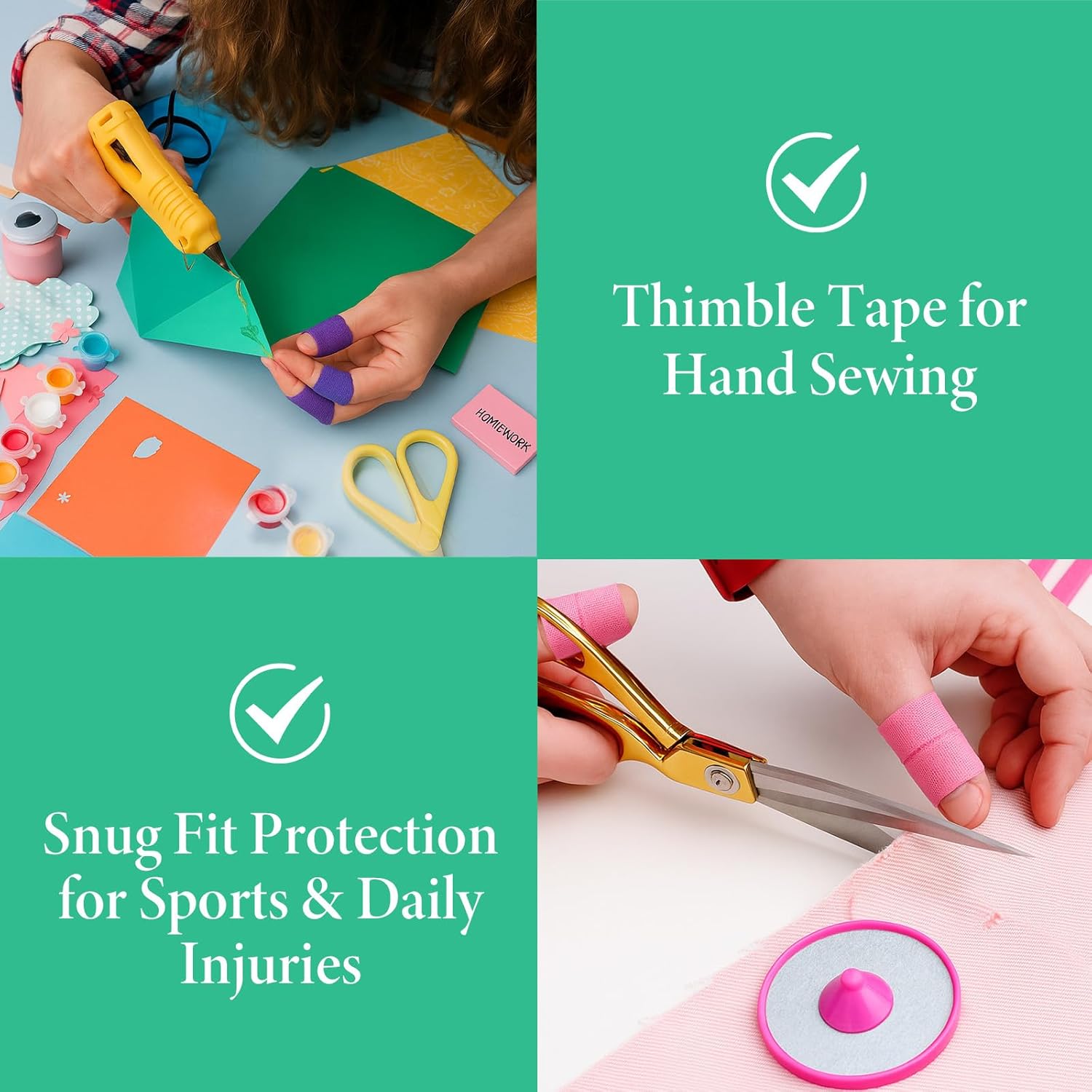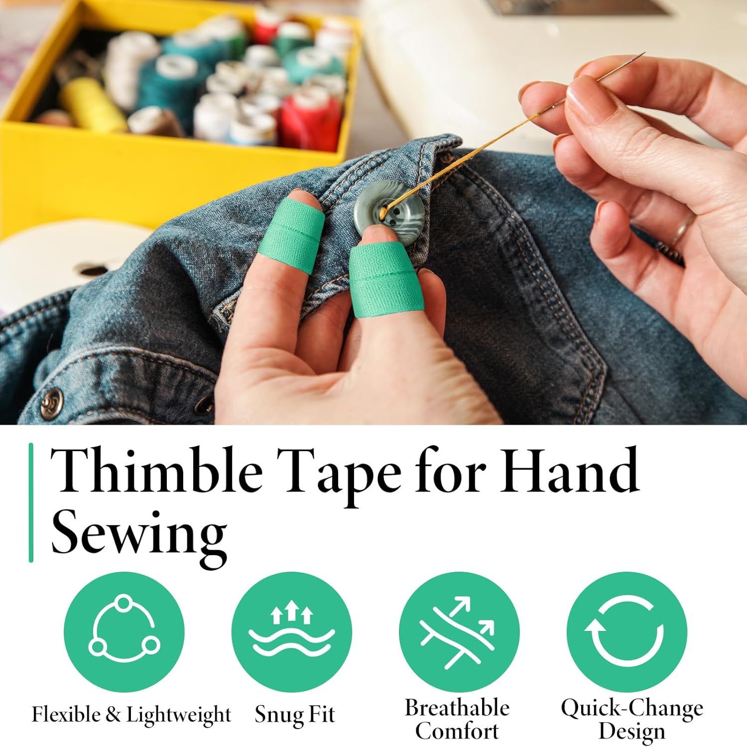 - 【Safe And Skin-Friendly】 Crafted from latex-free, skin-friendly polyester, our thimble tape is both puncture-resistant and non-adhesive. Keep your hands clean and comfortable during long crafting sessions, knowing that your skin is protected and irritation-free.