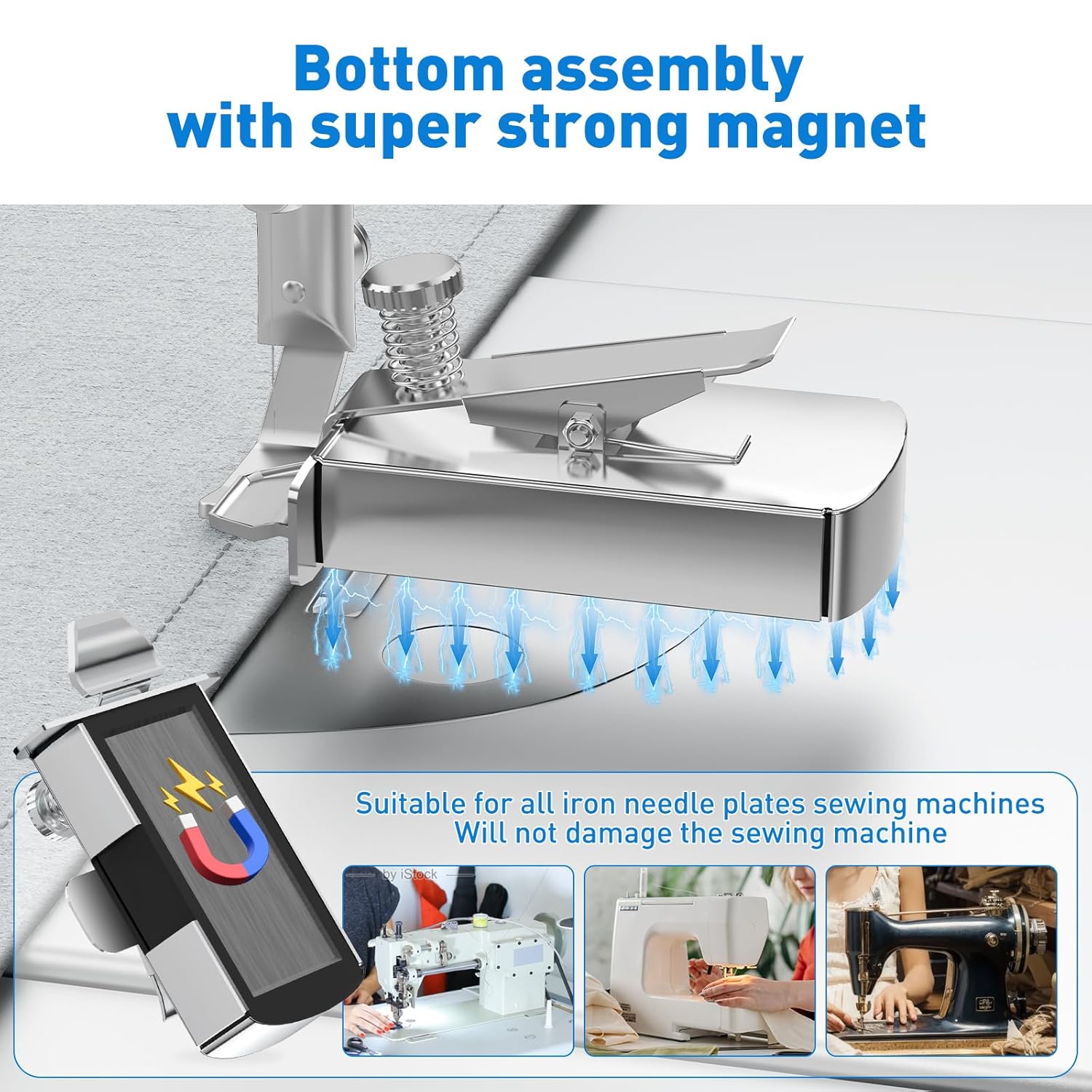 - The magnetic properties of the seam guide make it can quickly adhere to the metal surface of the sewing machine without the need for tools or complex adjustments