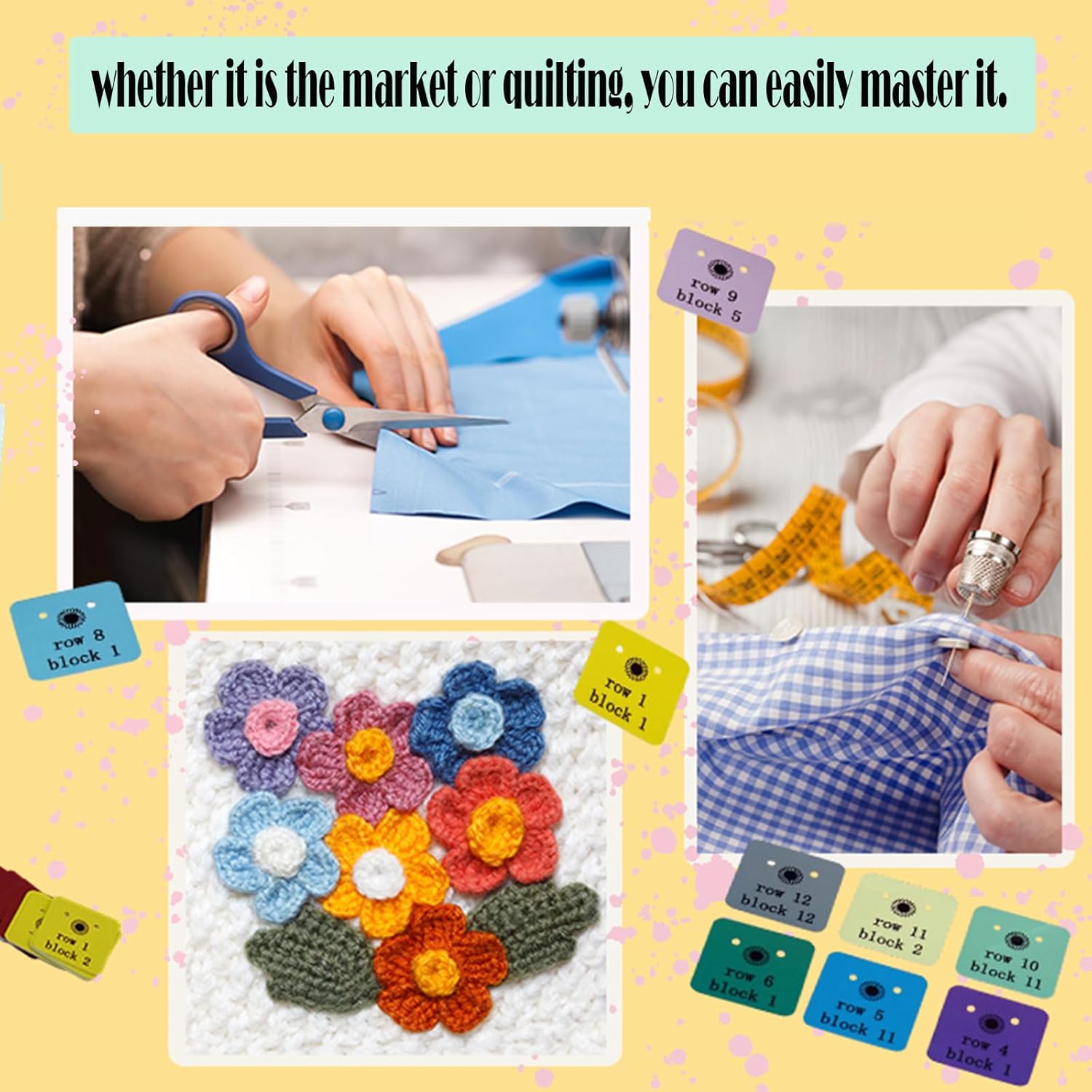 Cowenhey Quilt Block Row Markers, 1-12 Rows 144Pcs with Storage Box, Sewing Marking Tools Innovative Sewing and Quilting Notions, Paper Cardstock with Holes