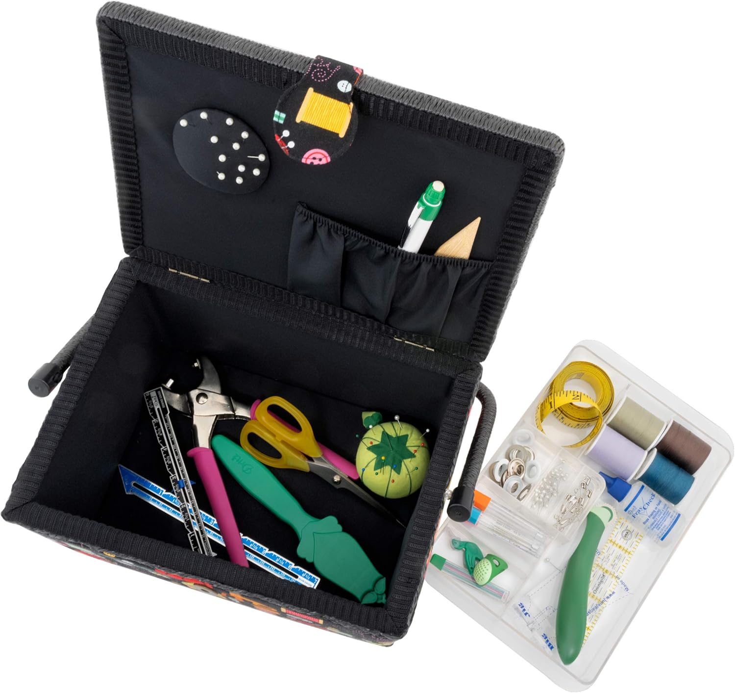 - Includes a sturdy removable tray for organizing small tools and sewing notions