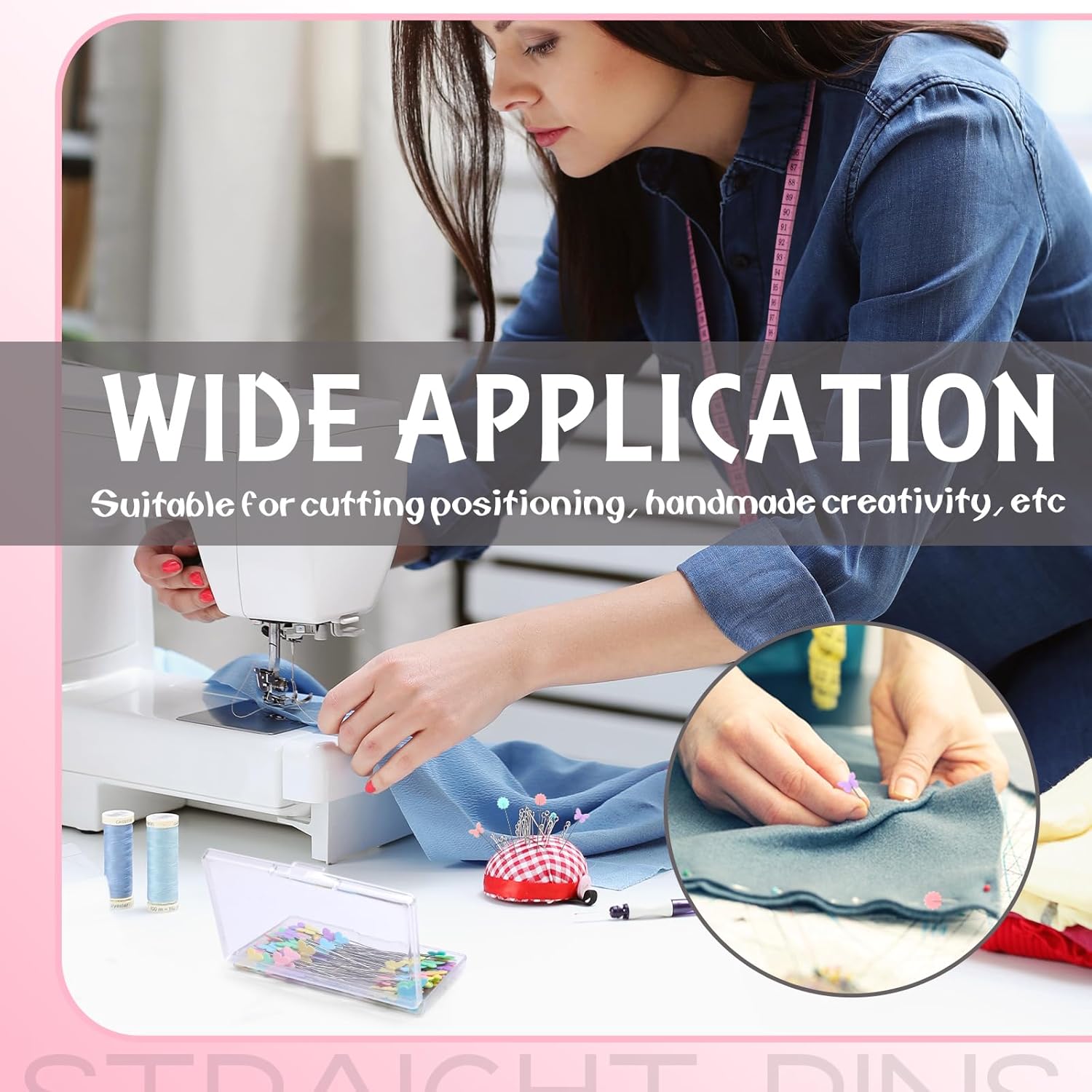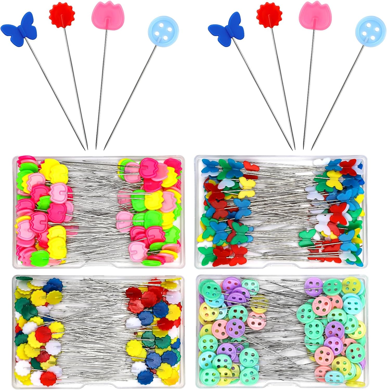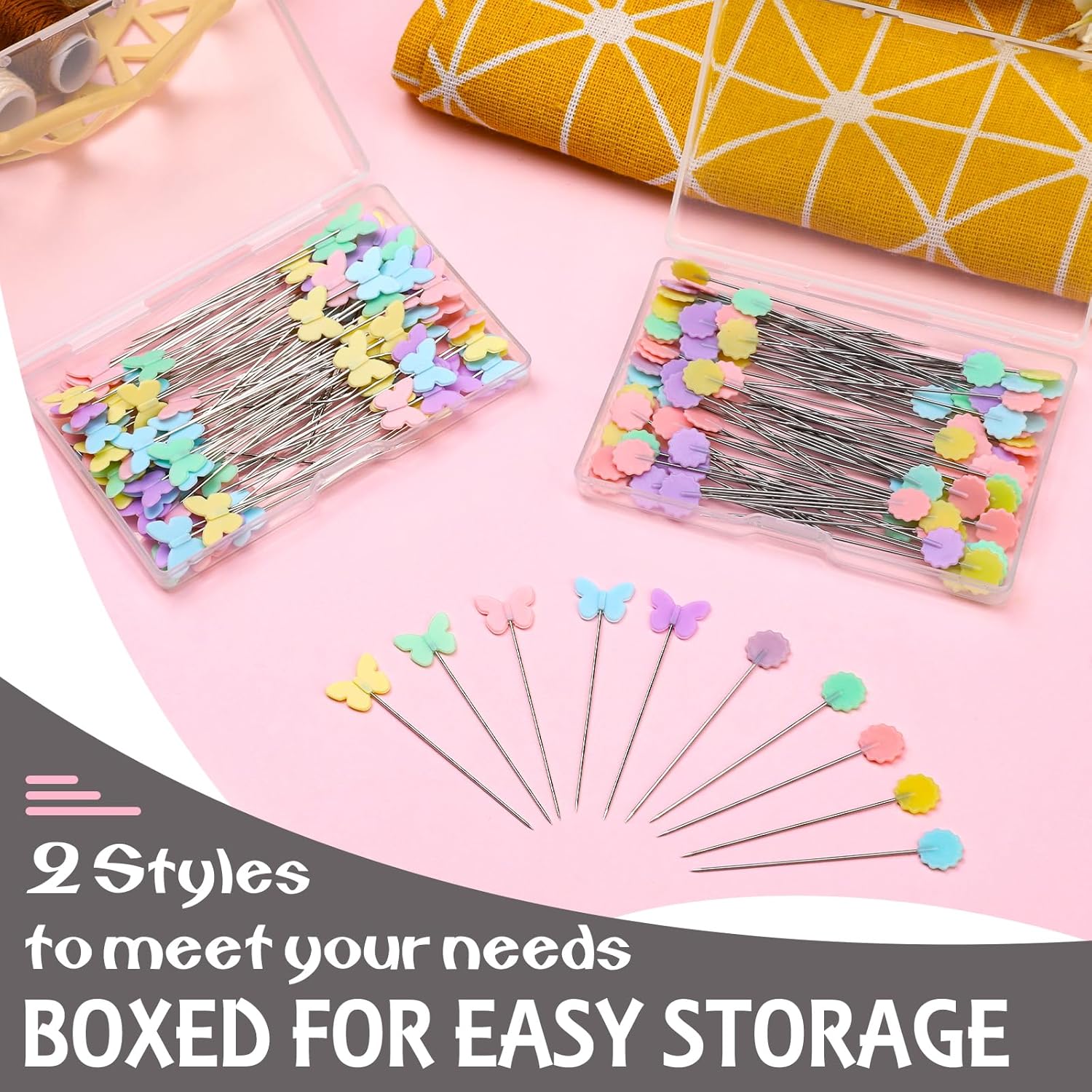 Fteven 200PCS Sewing Pins Flat Head Straight Pins Kits, Head Sewing Supplies Quilting Pins, Flower Head Sewing Pins for Fabric with Storage Boxes for Sewing DIY Projects Dressmaker Decoration