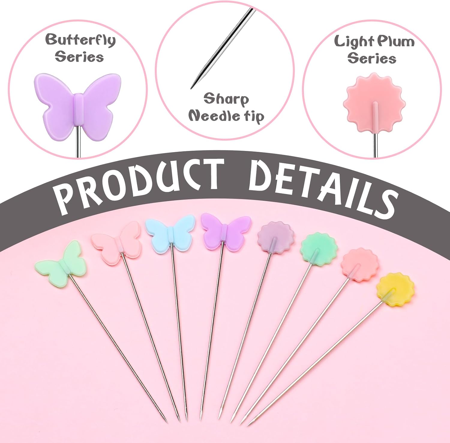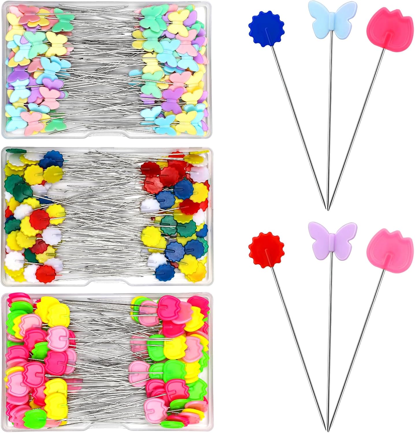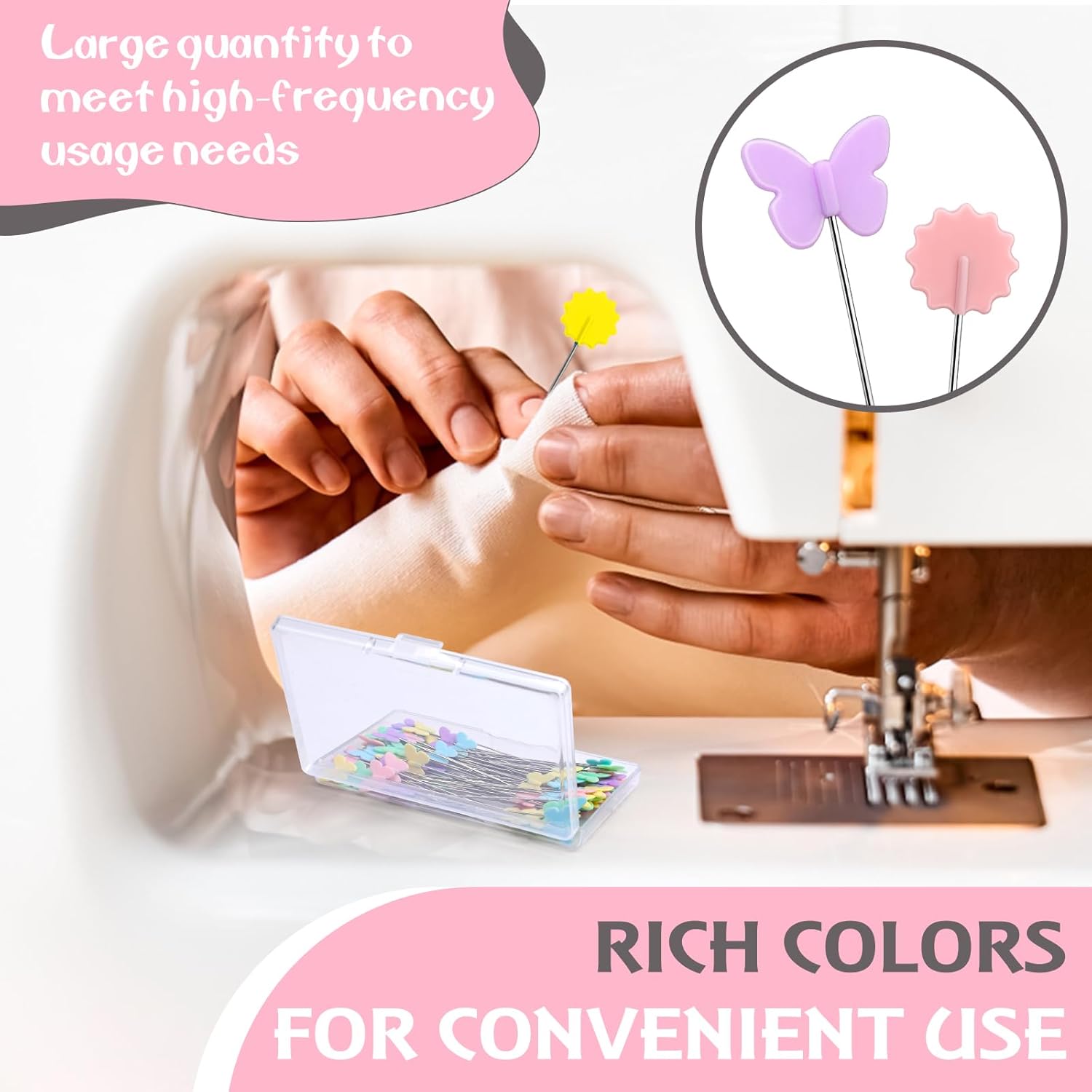 Fteven 200PCS Sewing Pins Flat Head Straight Pins Kits, Head Sewing Supplies Quilting Pins, Flower Head Sewing Pins for Fabric with Storage Boxes for Sewing DIY Projects Dressmaker Decoration