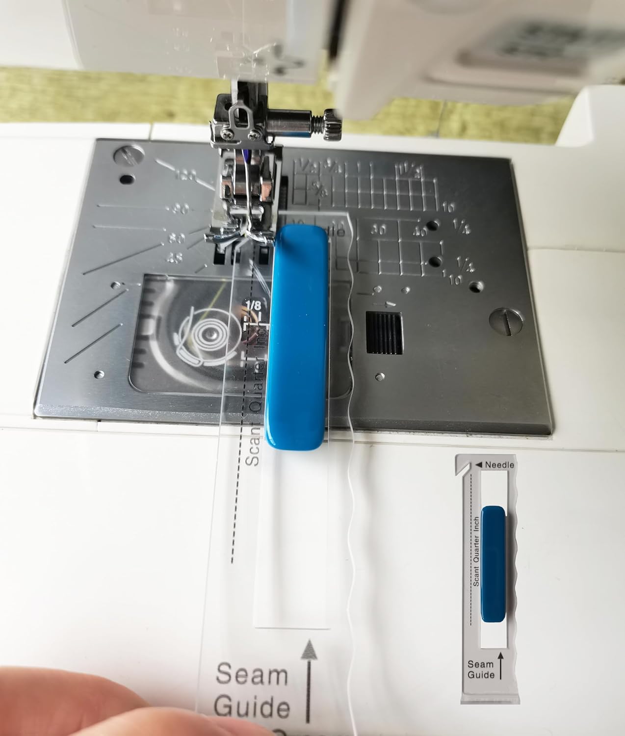 - The seam guide setter automatically aligns the Guide at a Scant ¼” from your needle to compensate for the thread and fold. This means that when you press your seams flat, they will be a full 1/4”, resulting in perfectly accurate finished sizes every time.It ideal seam allowance for quilting.