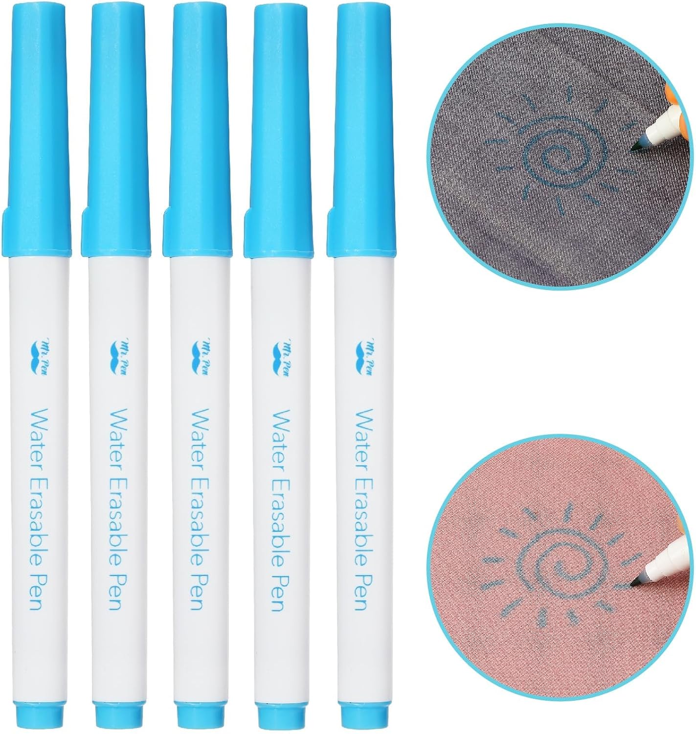 Mr. Pen- Fabric Markers for Sewing, 5 Pack, Blue, Erasable, Water Soluble Fabric Marker, Fabric Pens for Sewing Erasable, Washable Fabric Marker, Water Soluble Pen, Fabric Marking Pens for Sewing