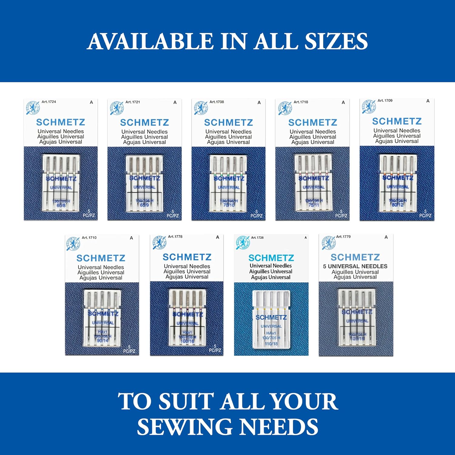 SCHMETZ Universal Sewing Machine Needles – Size 80/12, 5-Needle Cards, Pack of 5